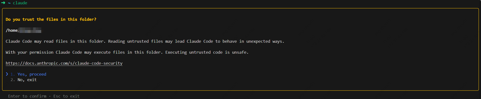 首次运行会提示是否继续,选择 Yes 进入 Claude Code 交互界面。