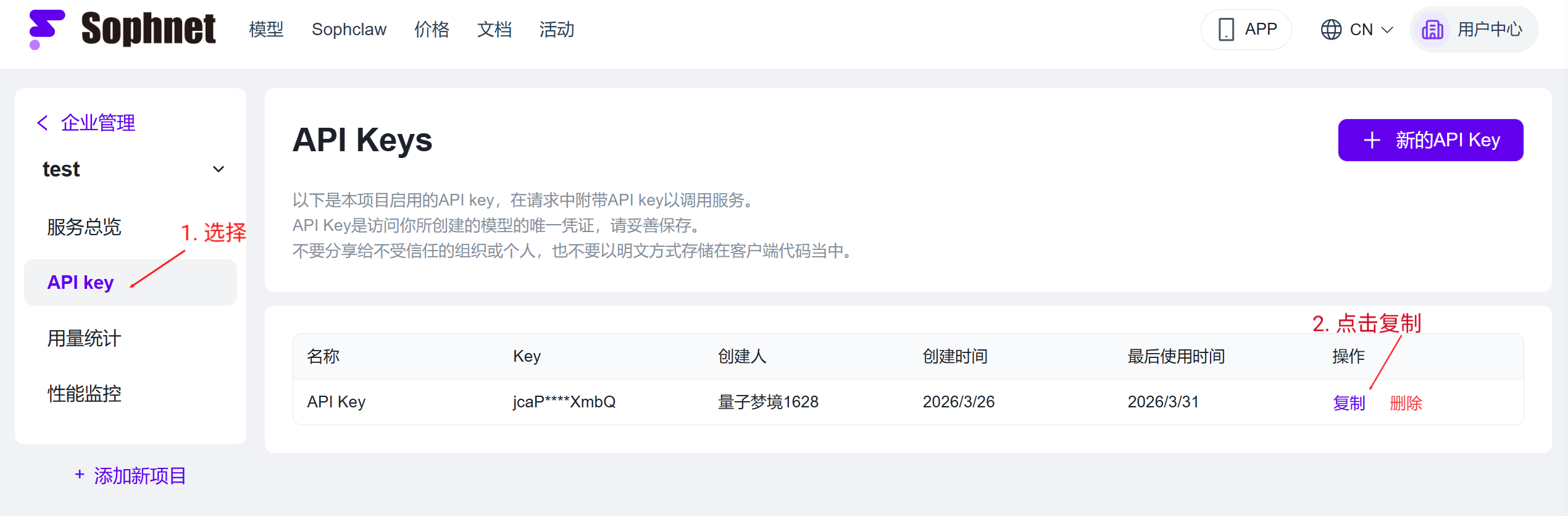 1. 获取Sophnet API 密钥